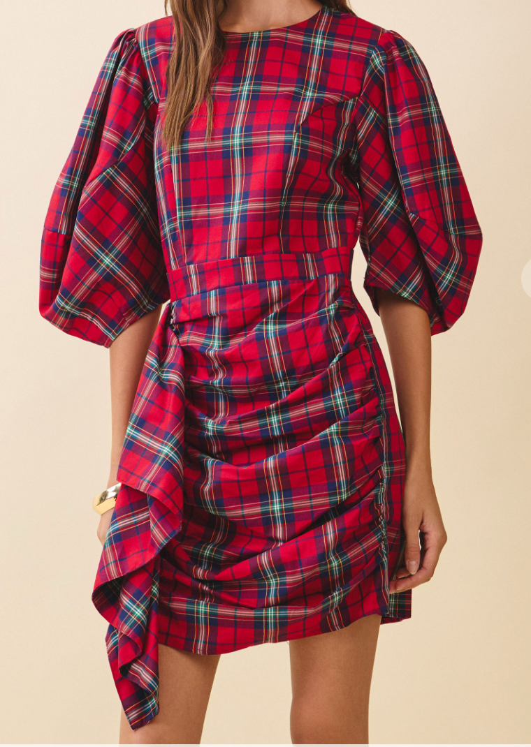 Classic holiday charm meets chic, modern detail. Our Noel Plaid Ruch Dress is designed to turn heads with its vibrant red tartan pattern, dramatic puff sleeves, and beautifully gathered ruching that flatters every curve. The cascading side ruffle adds the perfect touch of movement, making this dress a true standout for Christmas parties, festive photos, and every celebration on your calendar.