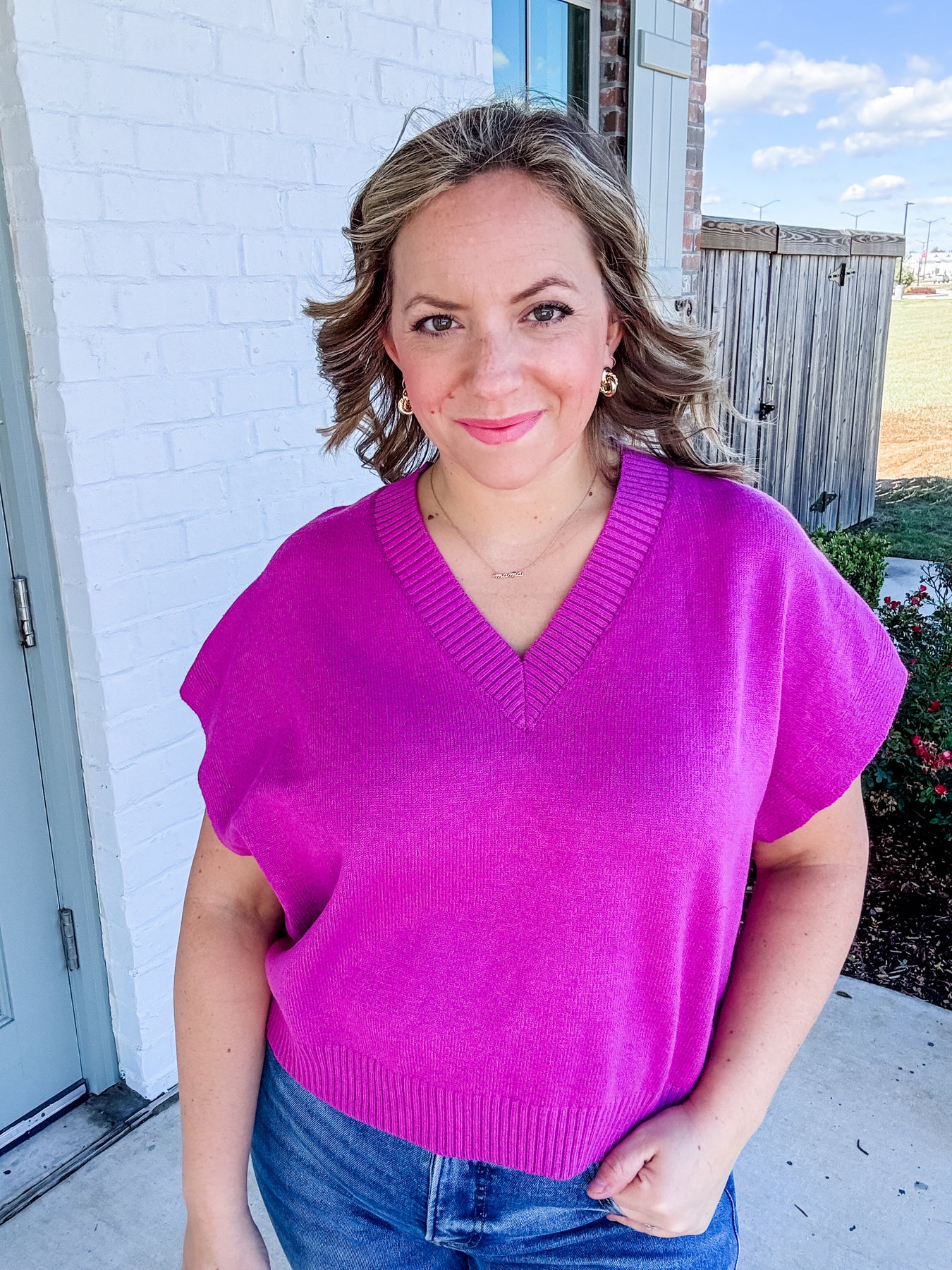 💜 Add a little color and confidence to your fall lineup with this standout sweater vest!