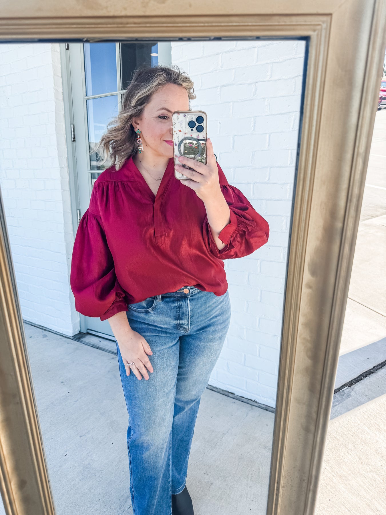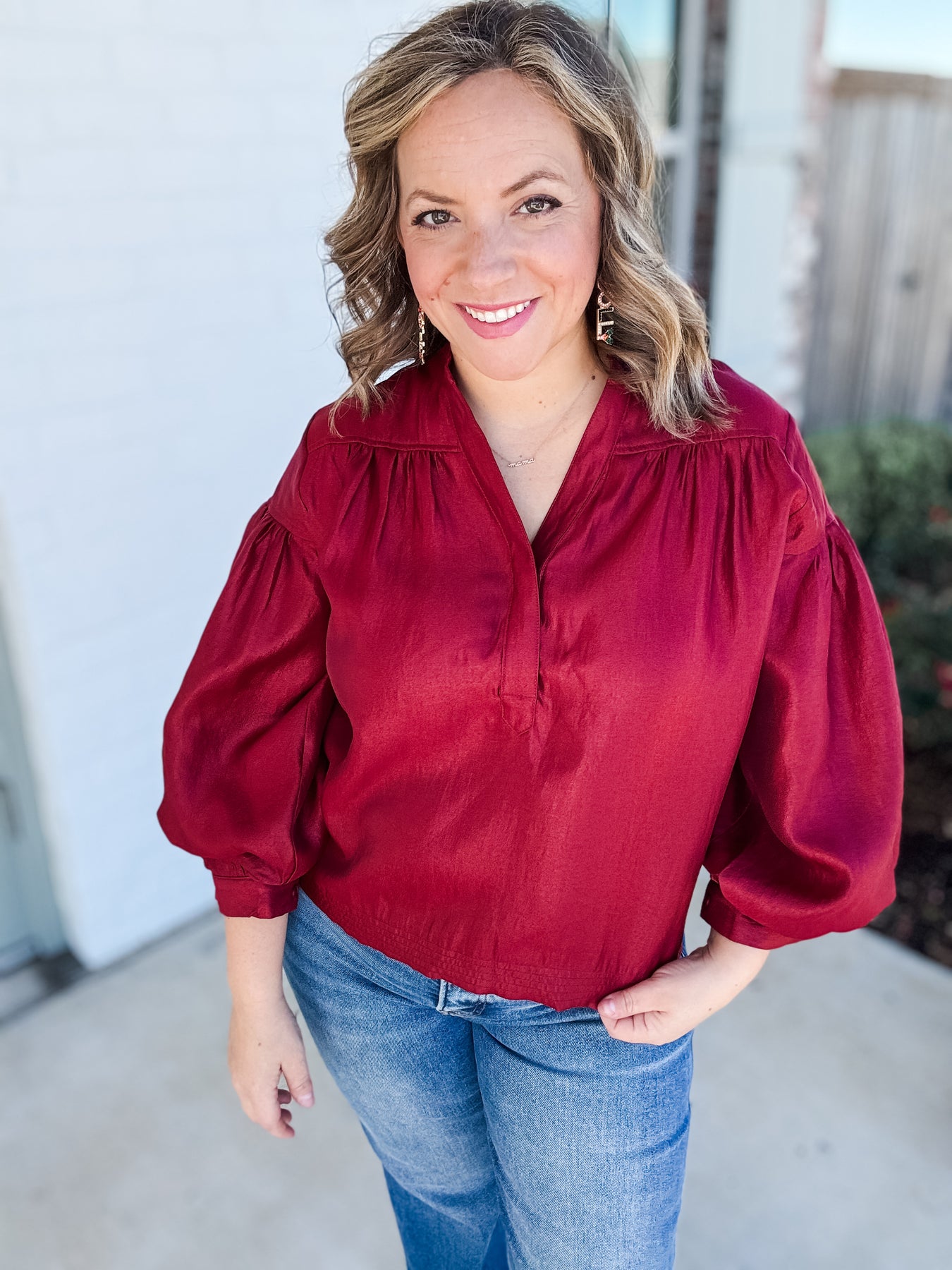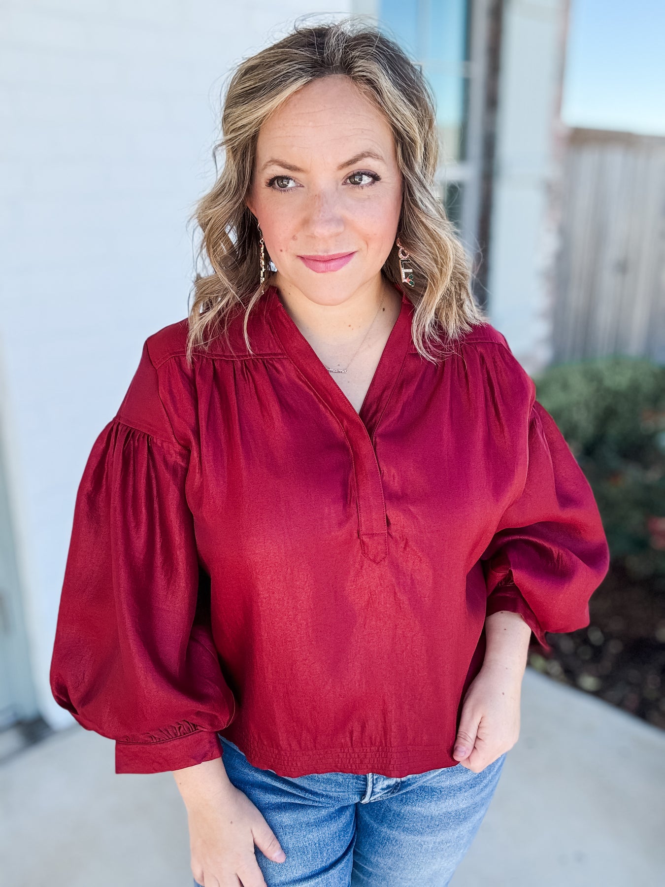 Add a touch of festive sophistication with our Holly Blouse š· Featuring a rich satin-finish fabric, a flattering V-neckline, and statement balloon sleeves, this top is the perfect blend of effortless and elegant. Dress it up with sparkly accessories for the holidays or pair it with denim for an elevated everyday look.